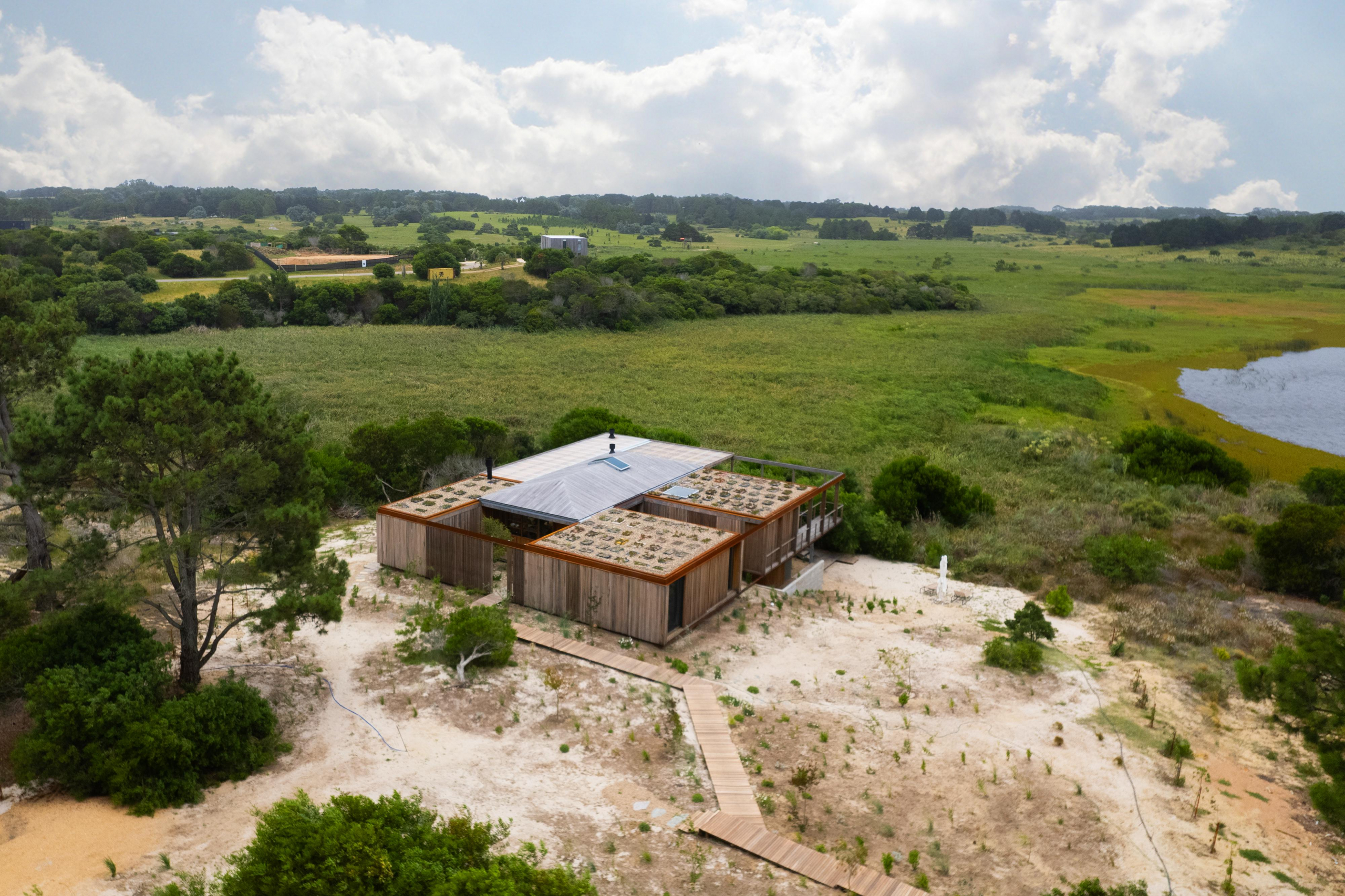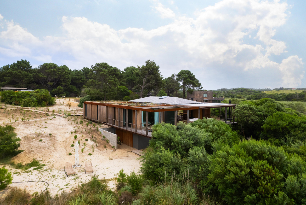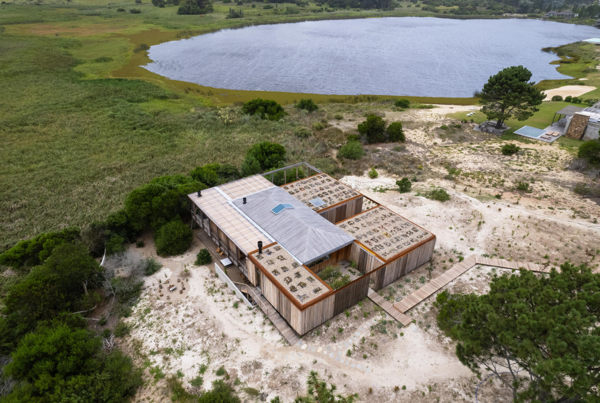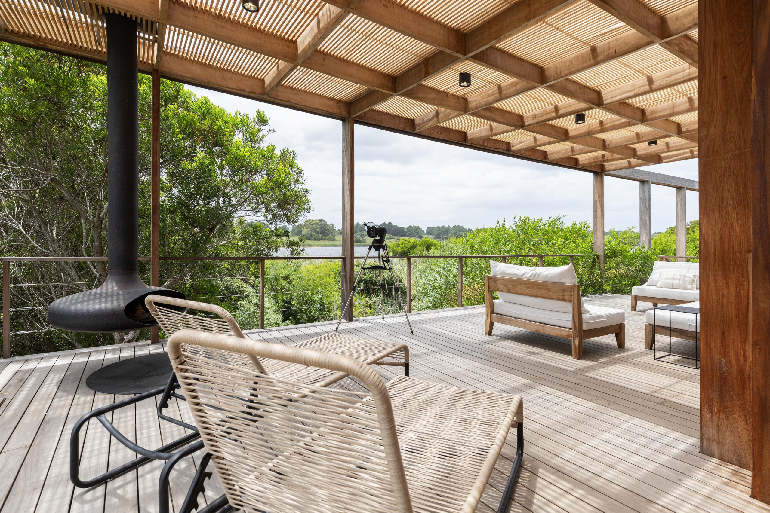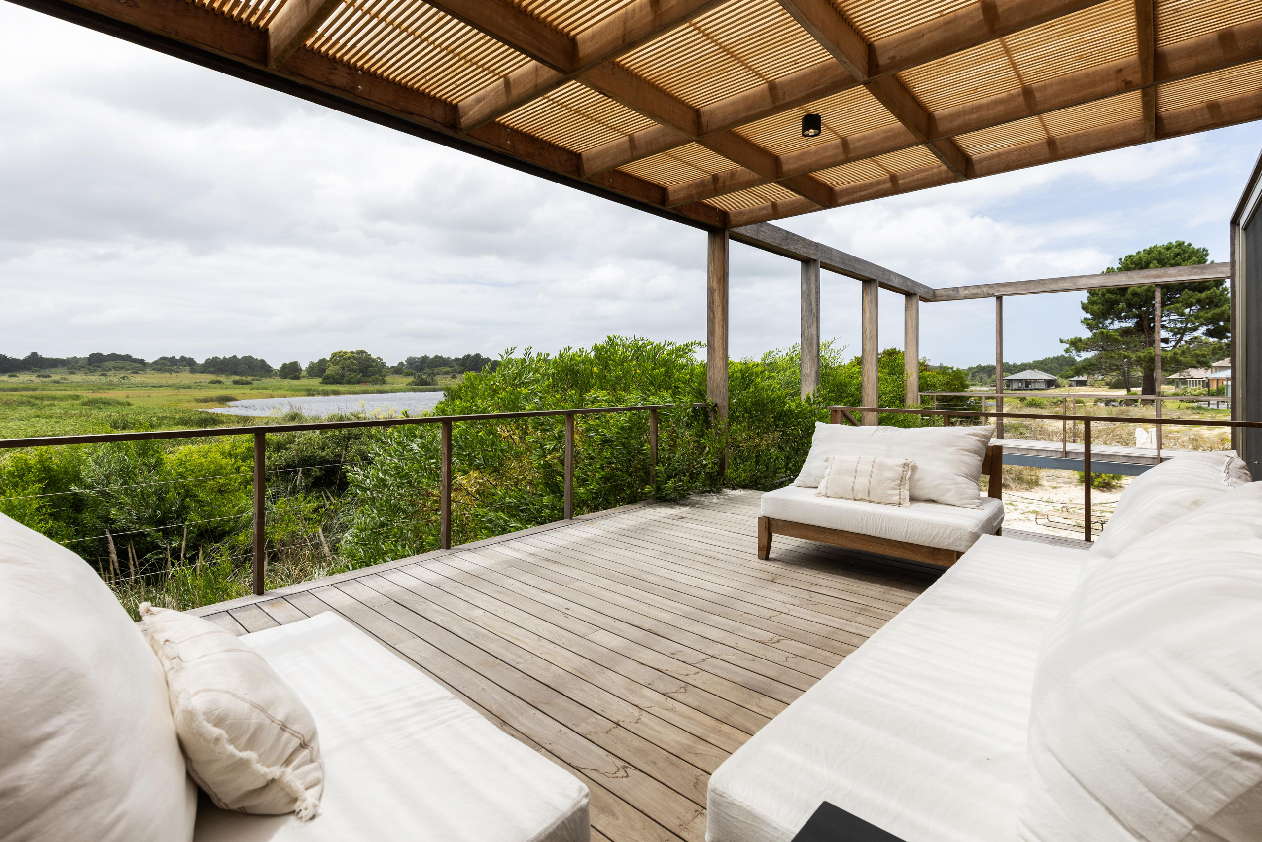 Al frente se encuentra la terraza con una gran vista a la Laguna, a la izquierda la barbacoa con una amplia galería.