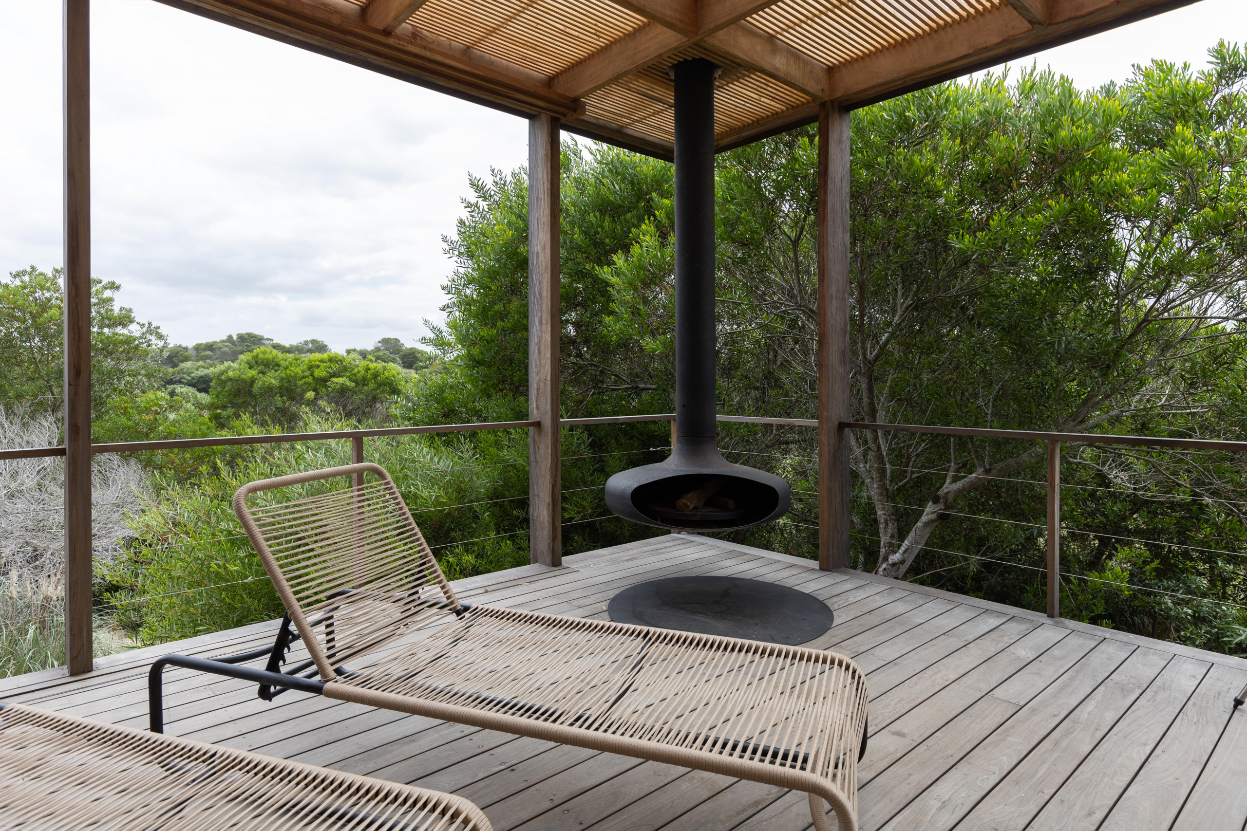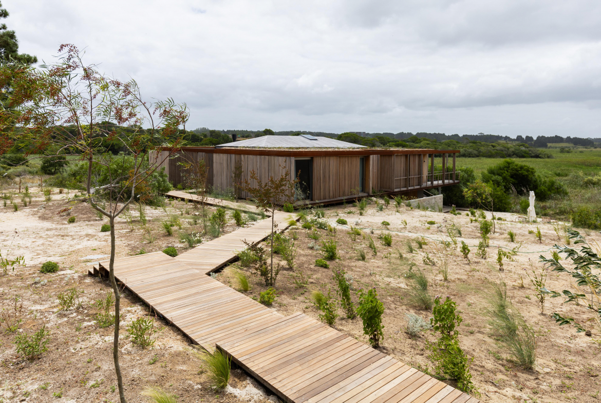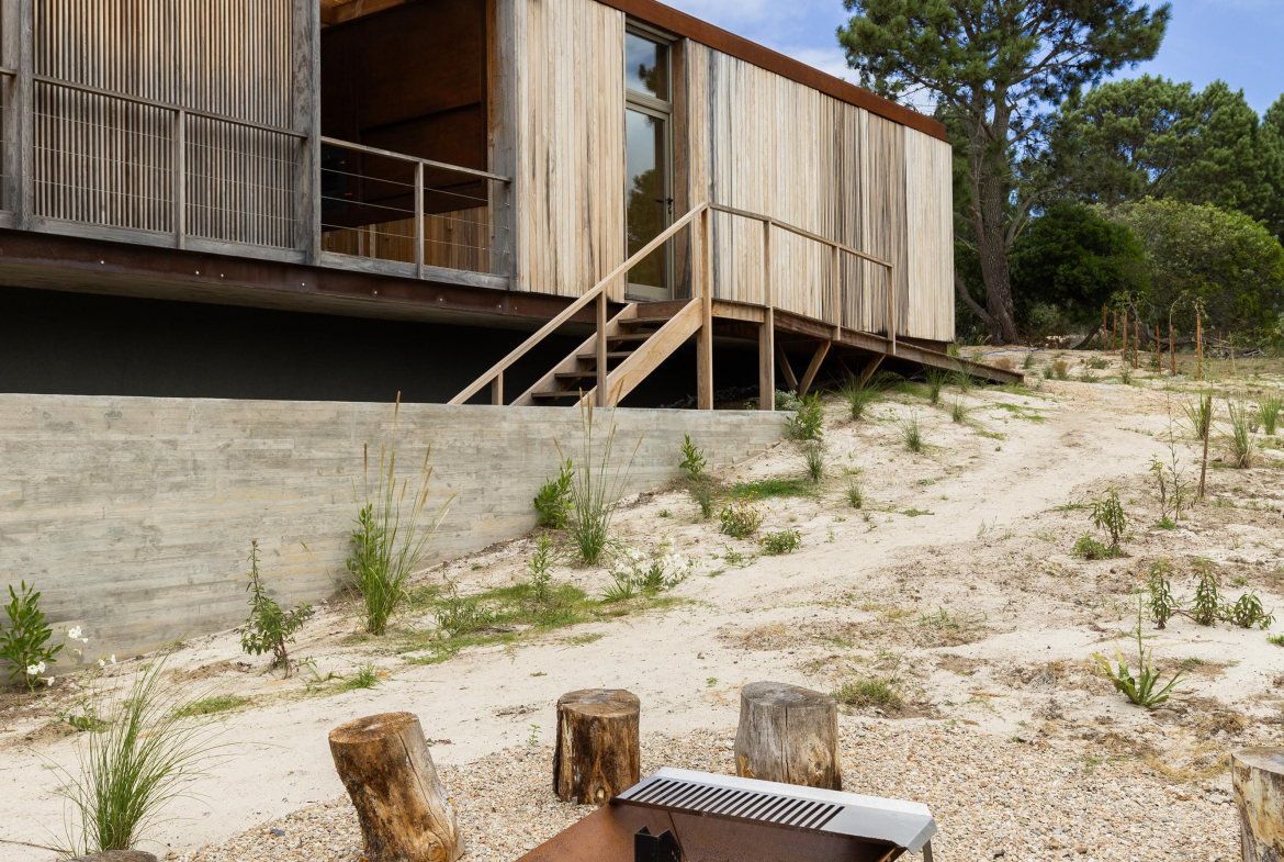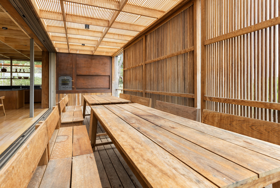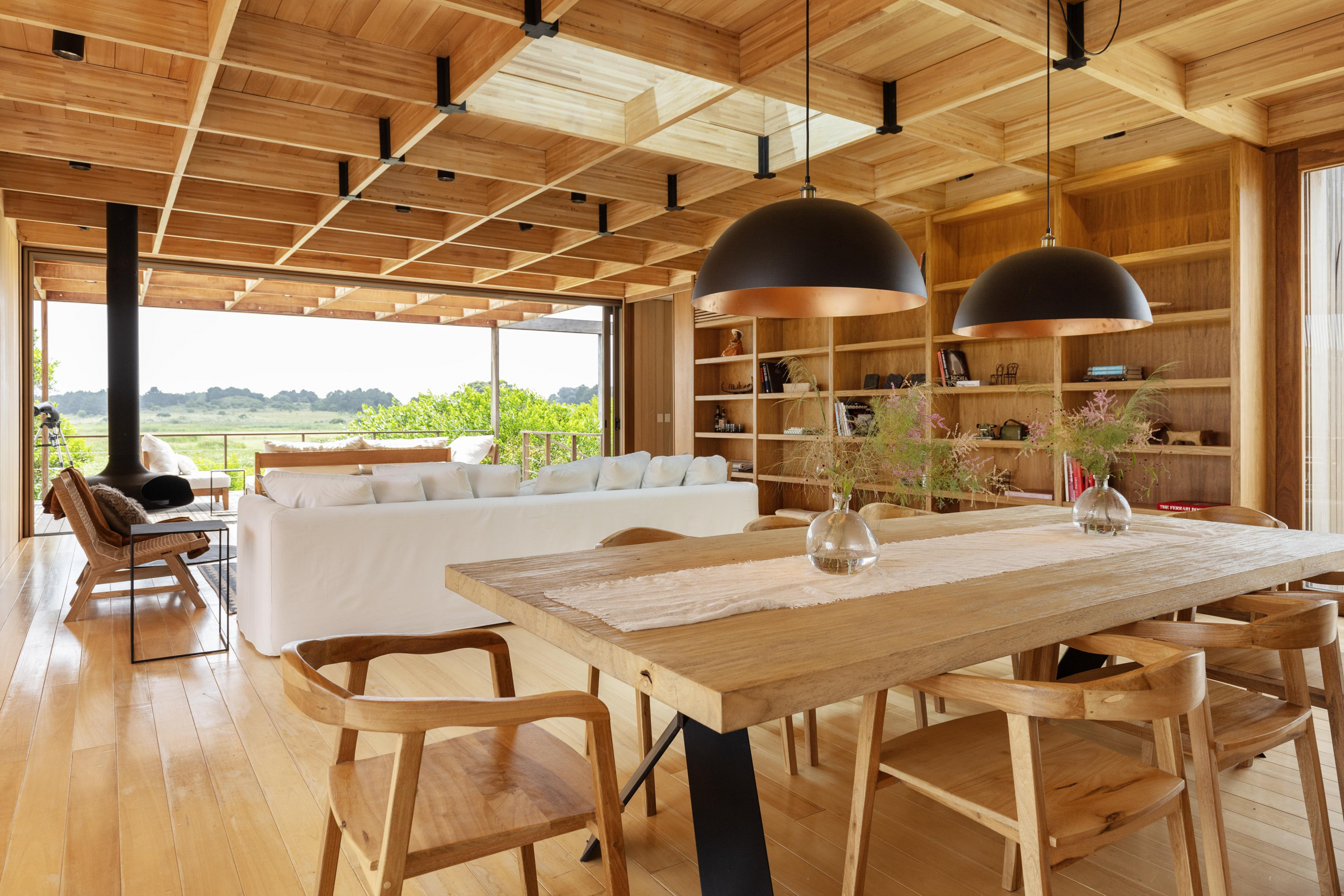 Al frente se encuentra la terraza con una gran vista a la Laguna, a la izquierda la barbacoa con una amplia galería.
