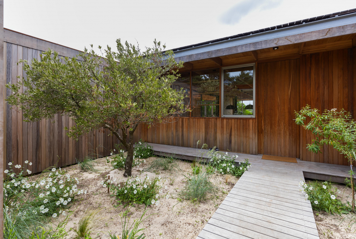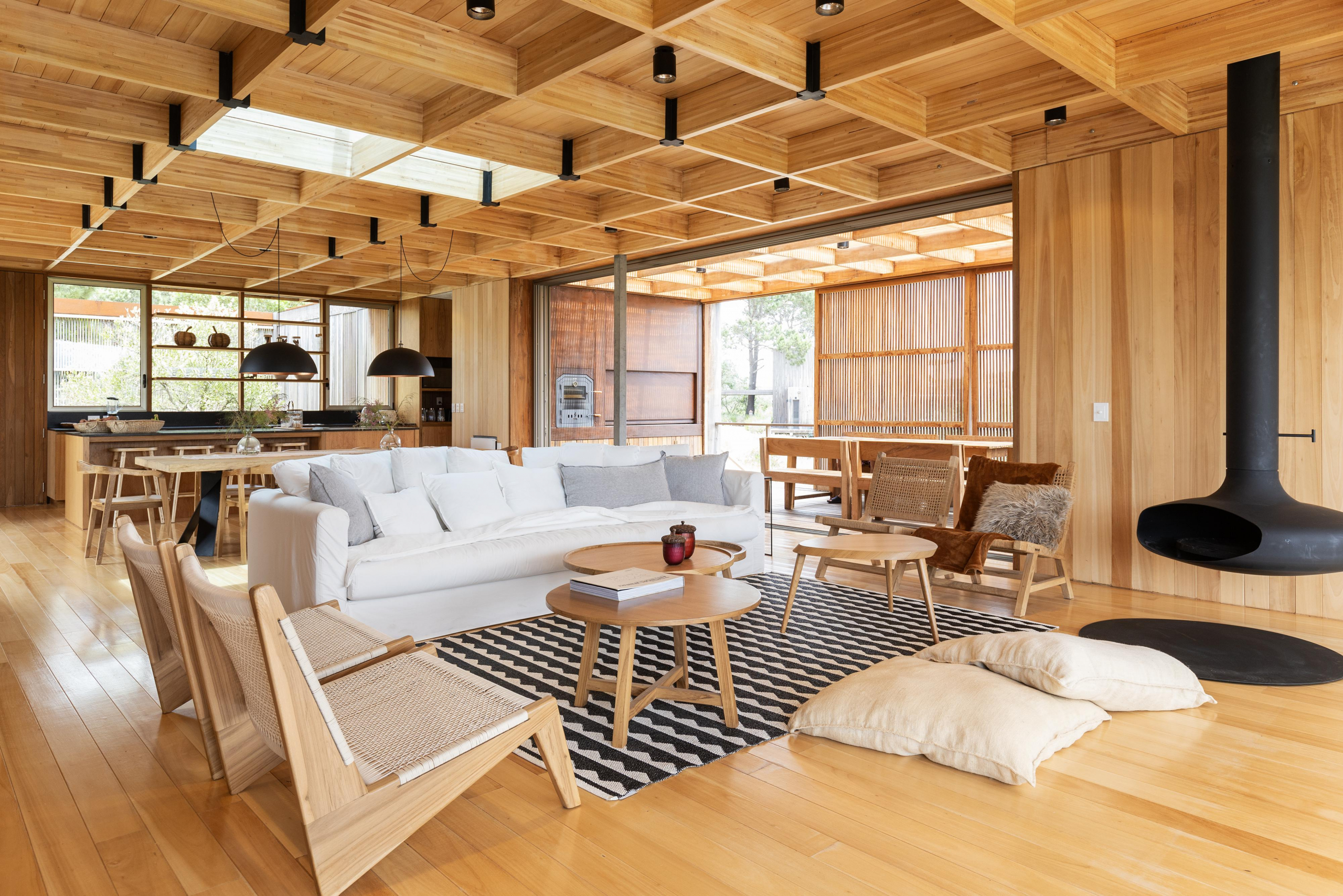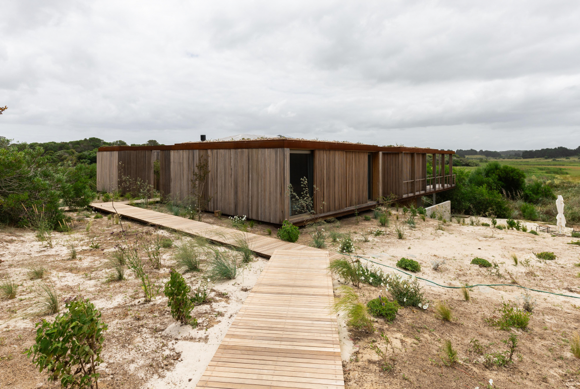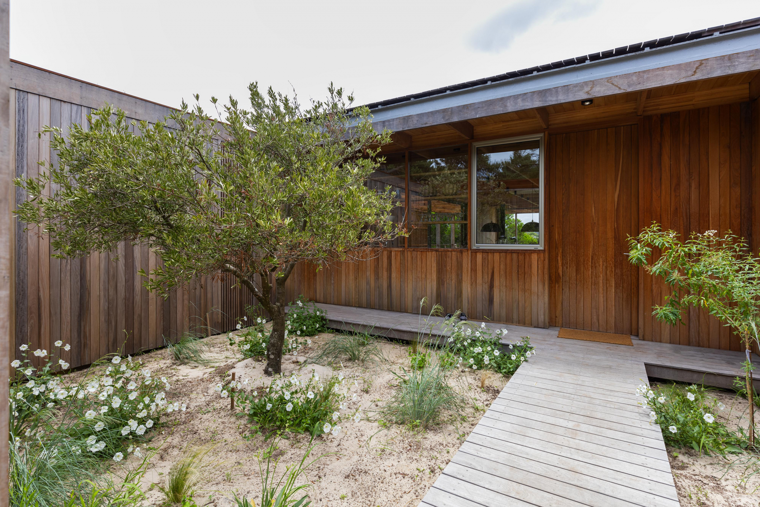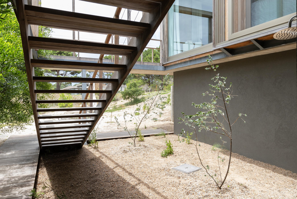 Al frente se encuentra la terraza con una gran vista a la Laguna, a la izquierda la barbacoa con una amplia galería.