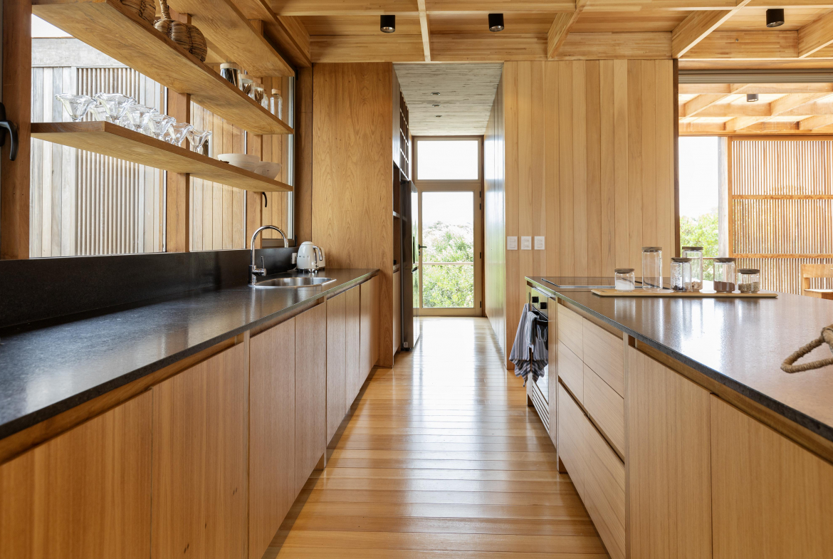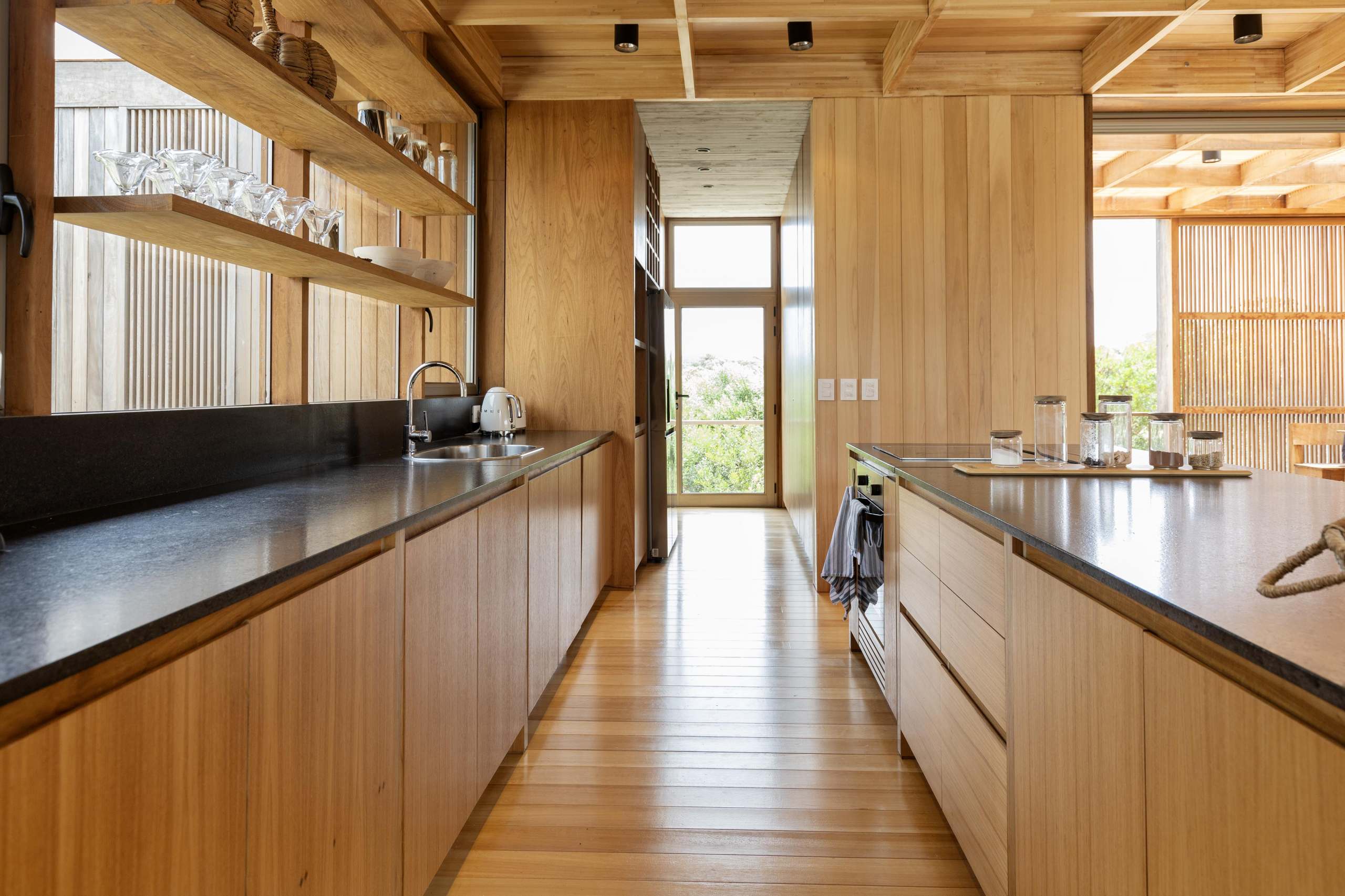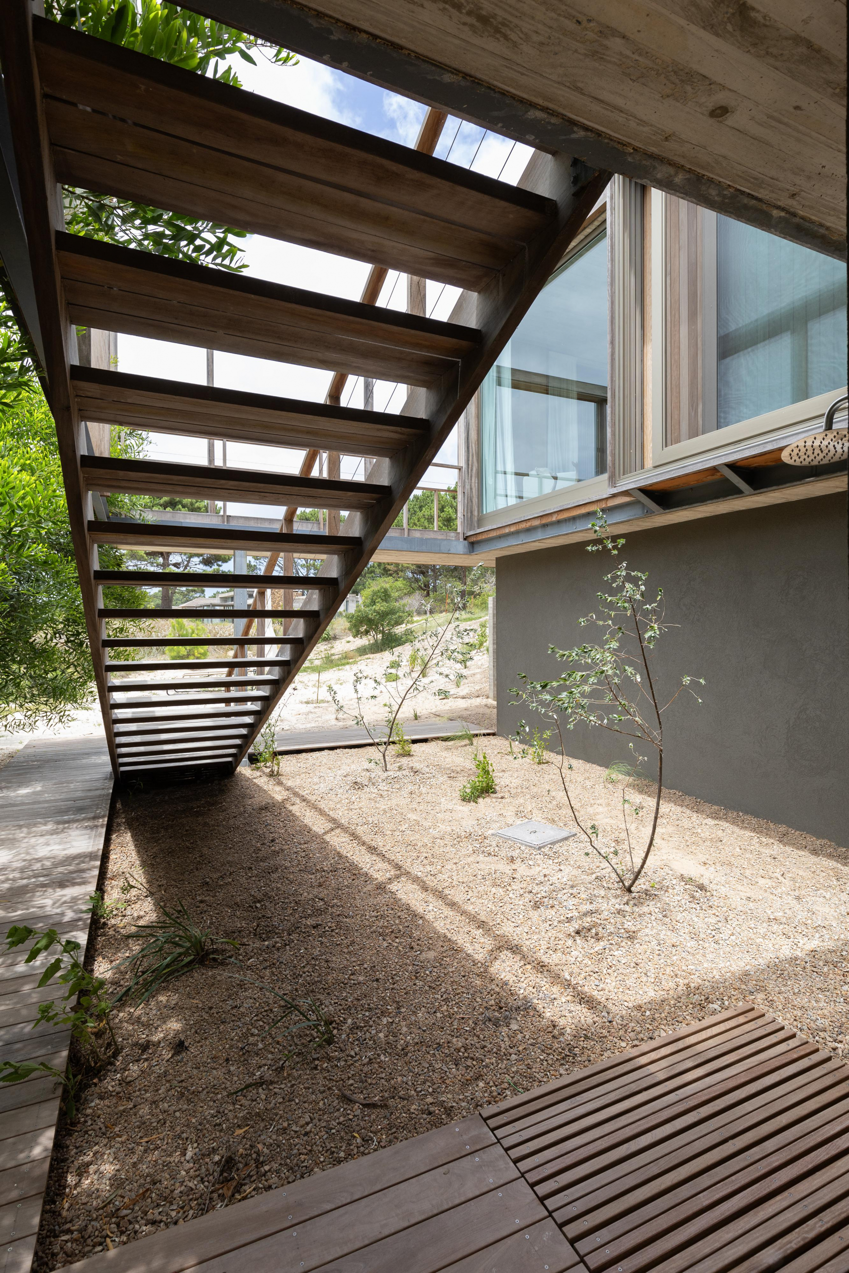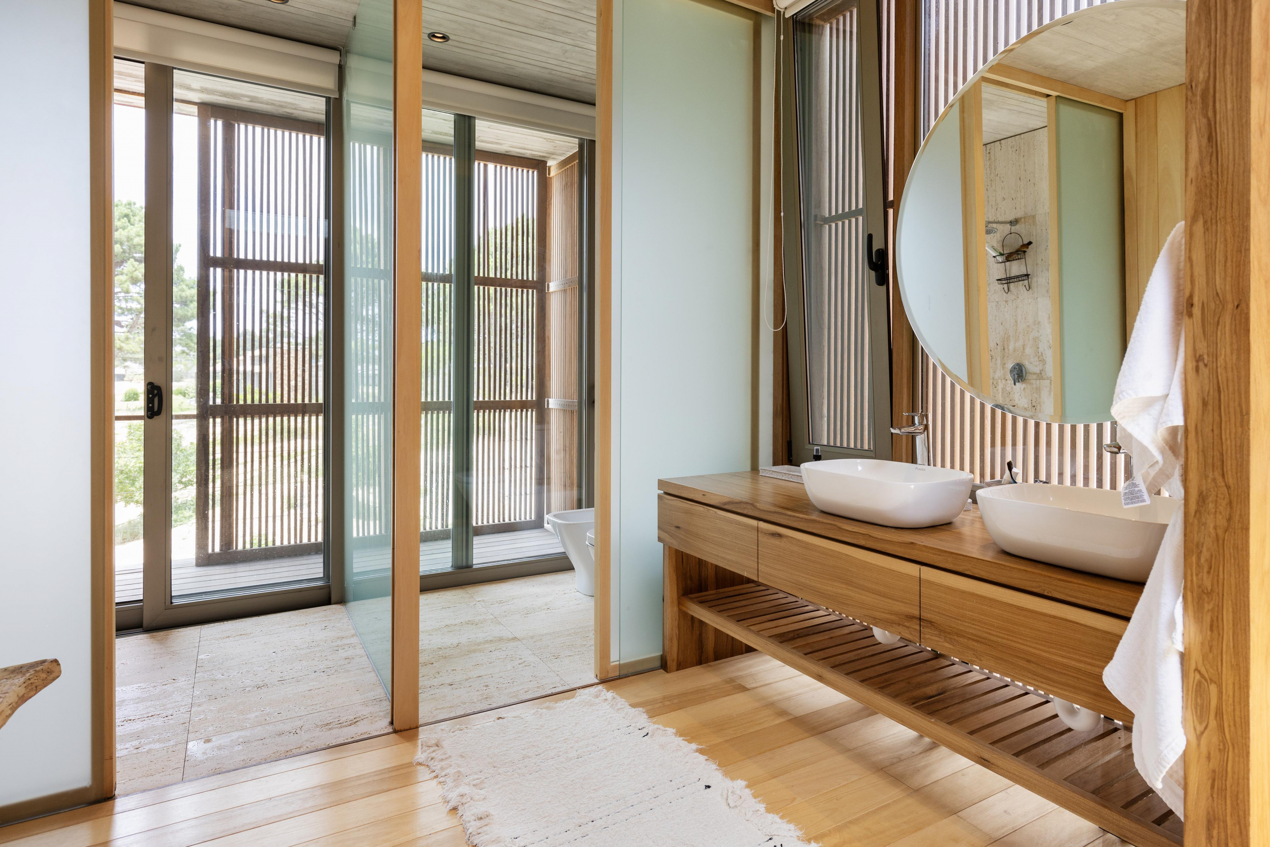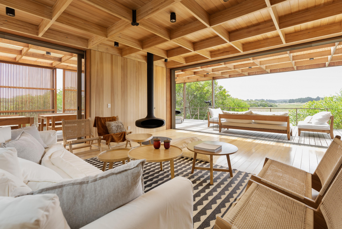 Al frente se encuentra la terraza con una gran vista a la Laguna, a la izquierda la barbacoa con una amplia galería.