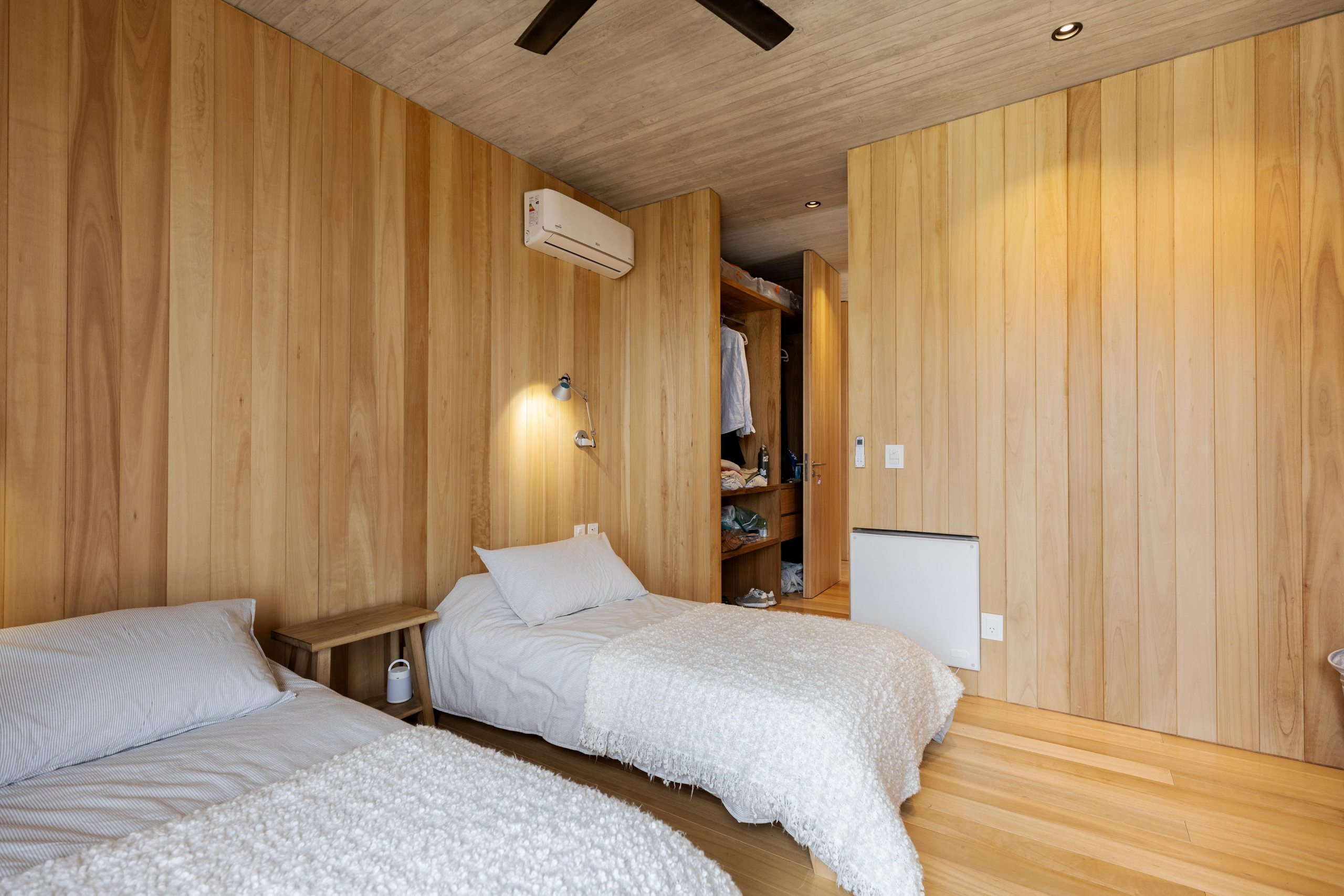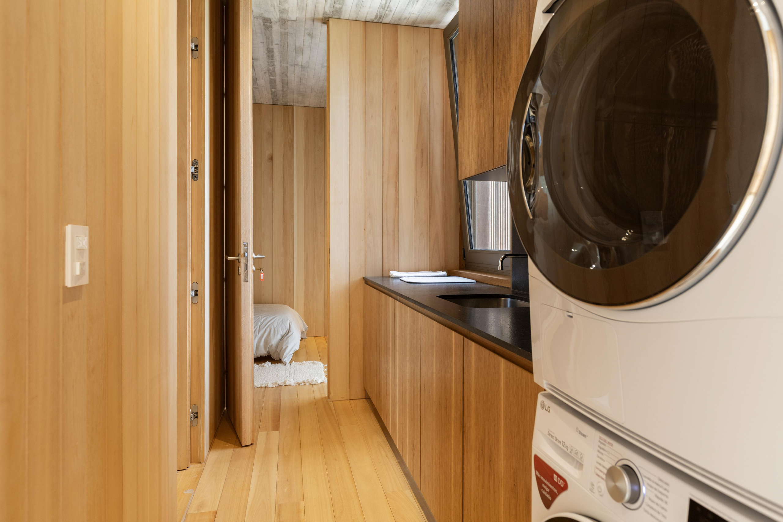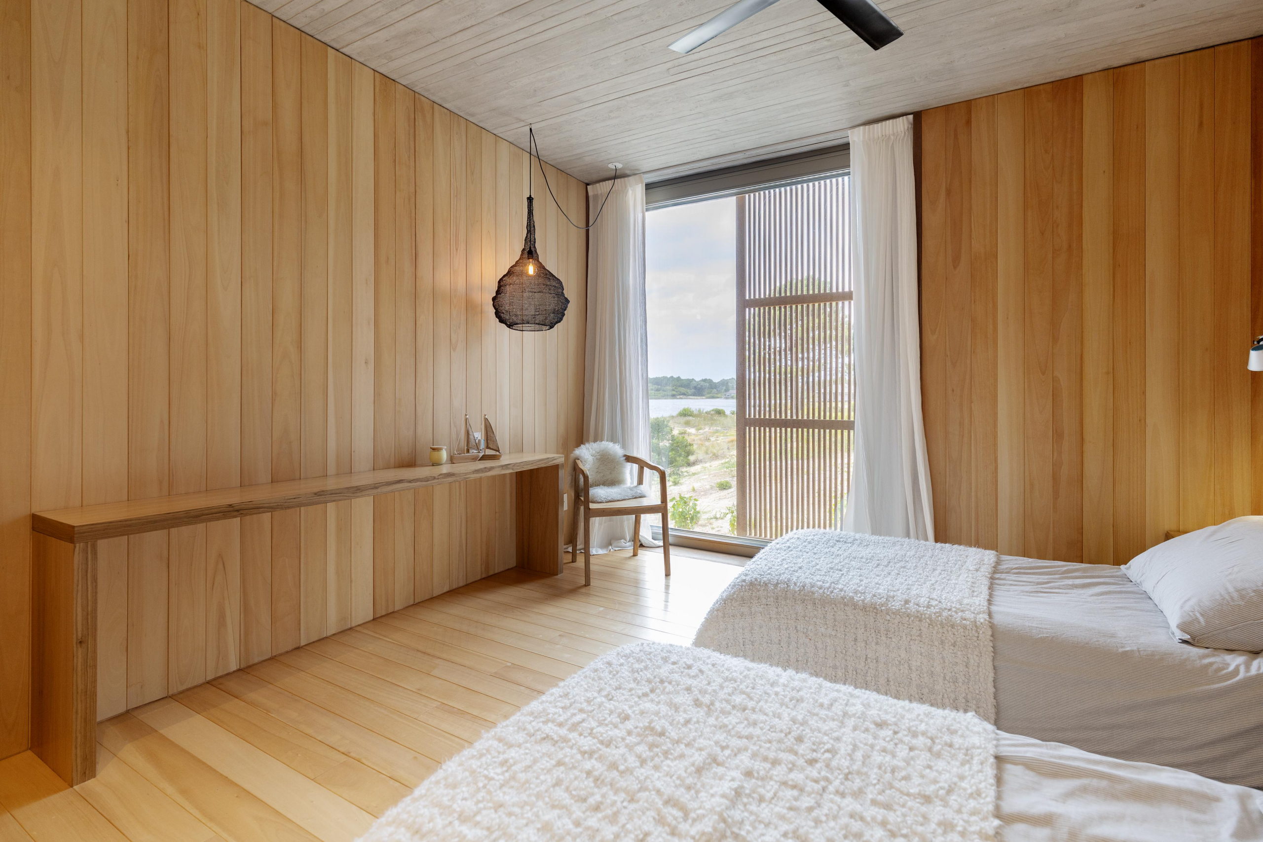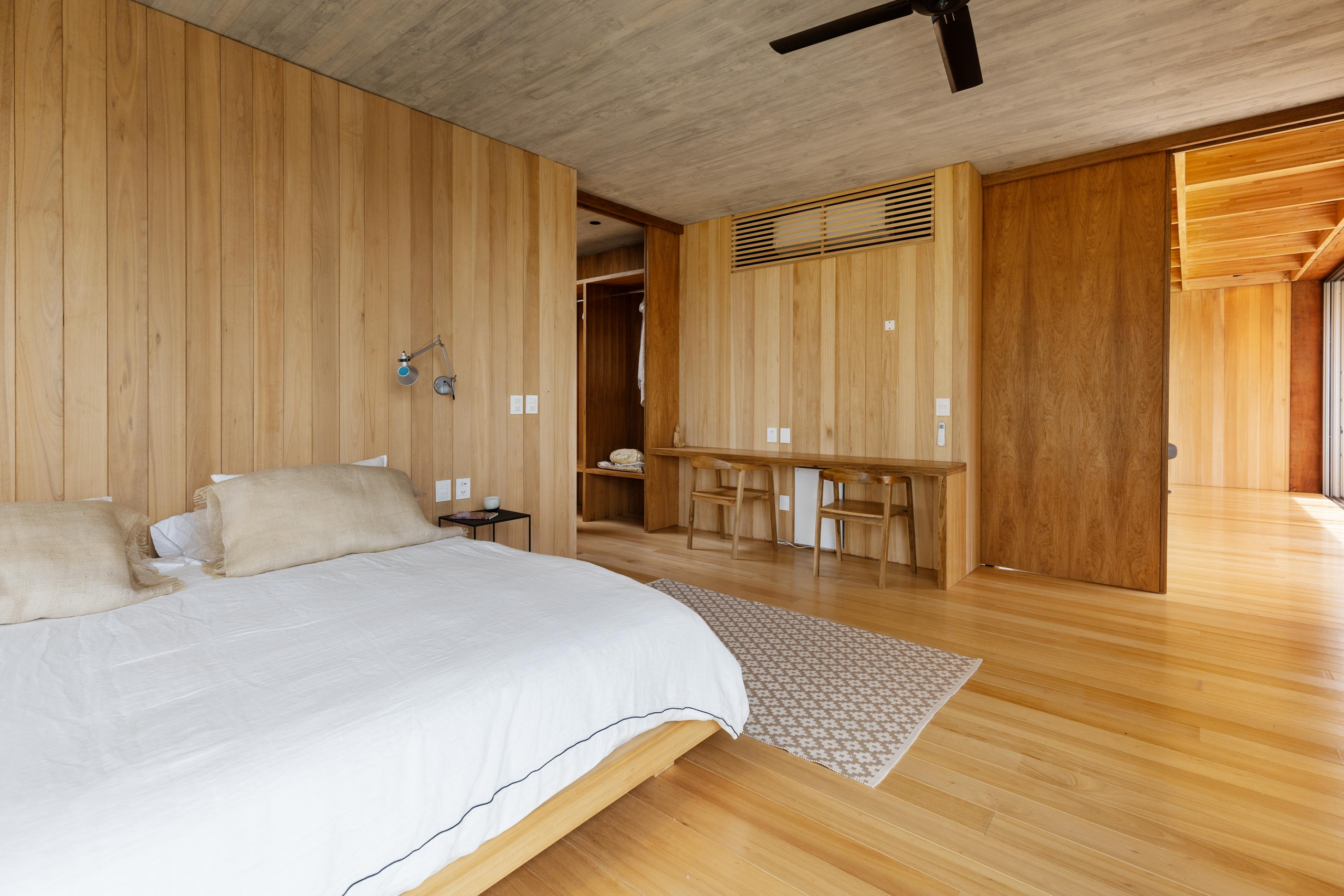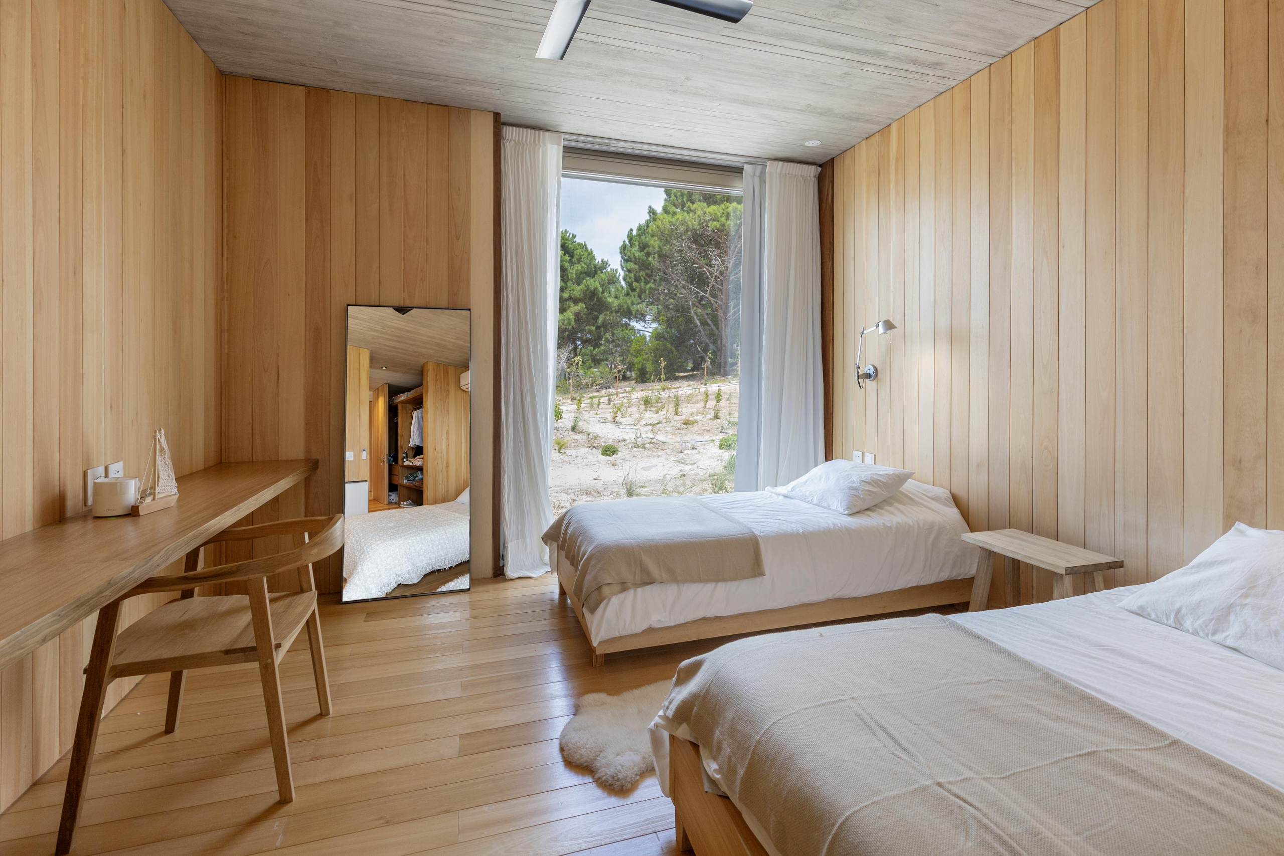 Consta de 3 dormitorios en suite ( la master al frente con grandes ventanales que dan hacia la Laguna) mas dependencia de servicio con su baño. Lavadero con lavarropa y secarropa.