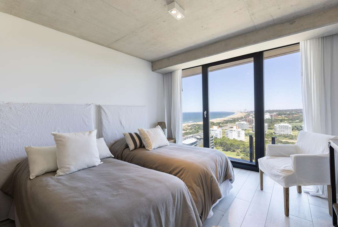 Esta unidad cuenta con un total de 226 metros cuadrados, en un piso 14, distribuido en dos dormitorios en suite, baños social completo, el área de comedor se integran perfectamente con la cocina, creando un ambiente sociable y acogedor unido a un amplio y luminoso living que da la sensación de estar suspendido sobre el mar. Esta fusión de espacios ofrece vistas panorámicas inigualables y una de amplitud simplemente extraordinaria.