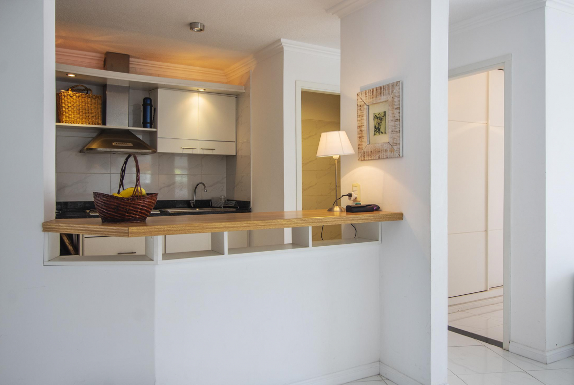 Cocina integrada por una barra al comedor, dormitorio en semisuite y master hacia el sur de la unidad.