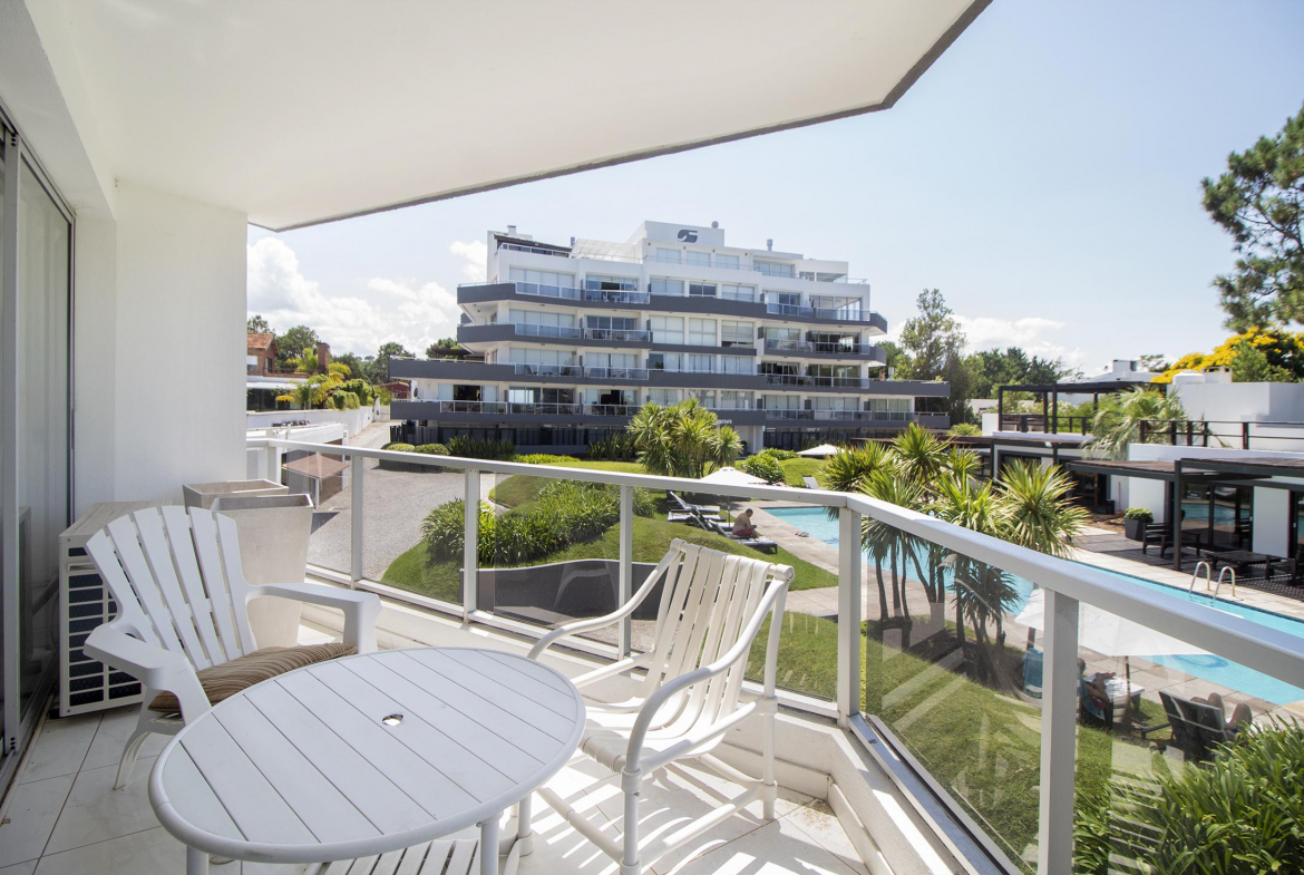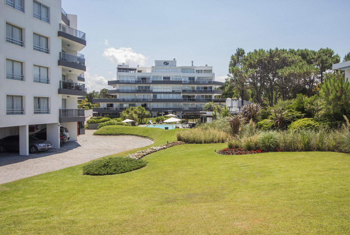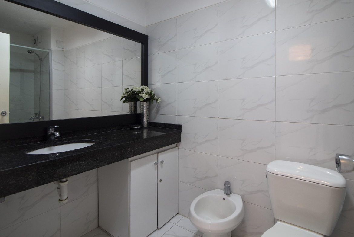 El edificio tiene servicio de mucama opcional, cochera adjudicada, piscina abierta, gimnasio, recepcion, ascensores, parrillero cerrado y abierto, sereno.